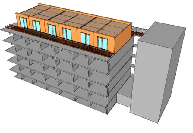 Op de dag van plaatsing zijn er veel hijswerkzaamheden nodig, waarbij kranen rondom het gebouw worden geplaatst. Er is een aparte ontsluiting voor bouwpersoneel, vaak in de vorm van een trappentoren. Hierdoor blijven de werkzaamheden buiten de woningen van de bewoners, wat wel zo prettig is. Deze fase duurt vier weken. Dankzij de prefabricage is de bouwperiode op locatie minimaal, wat efficiëntie en snelheid bevordert.
